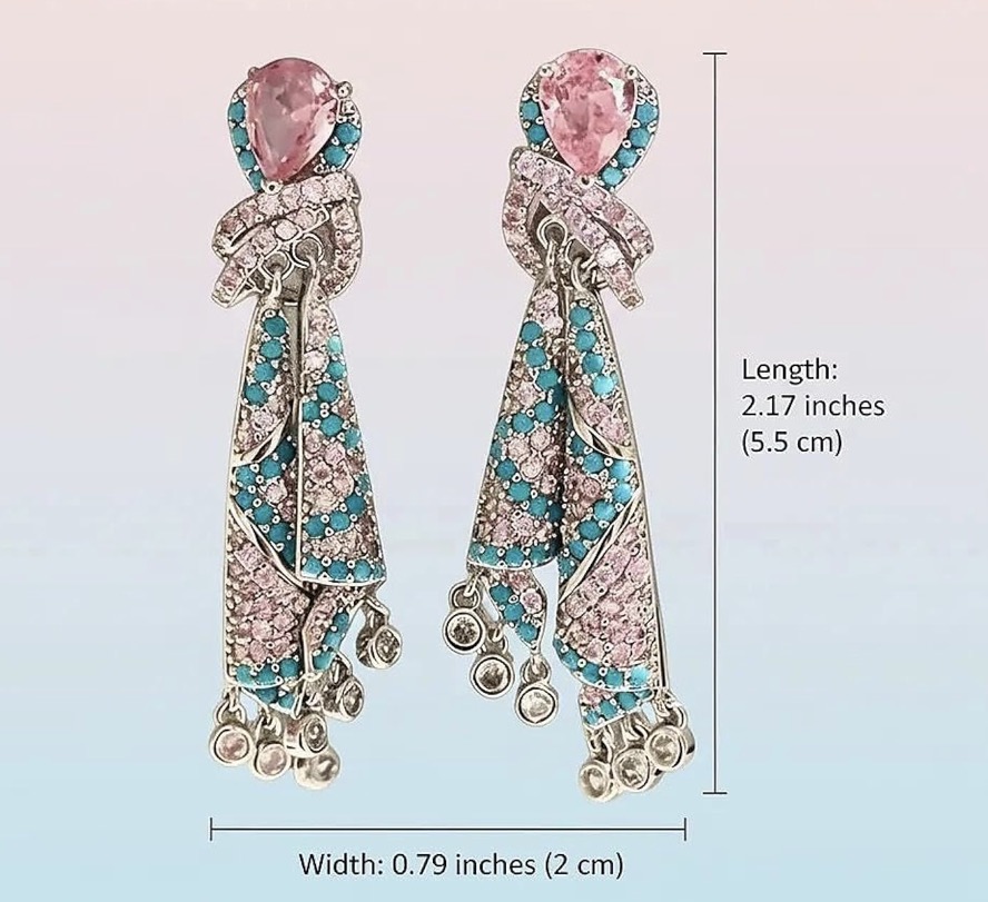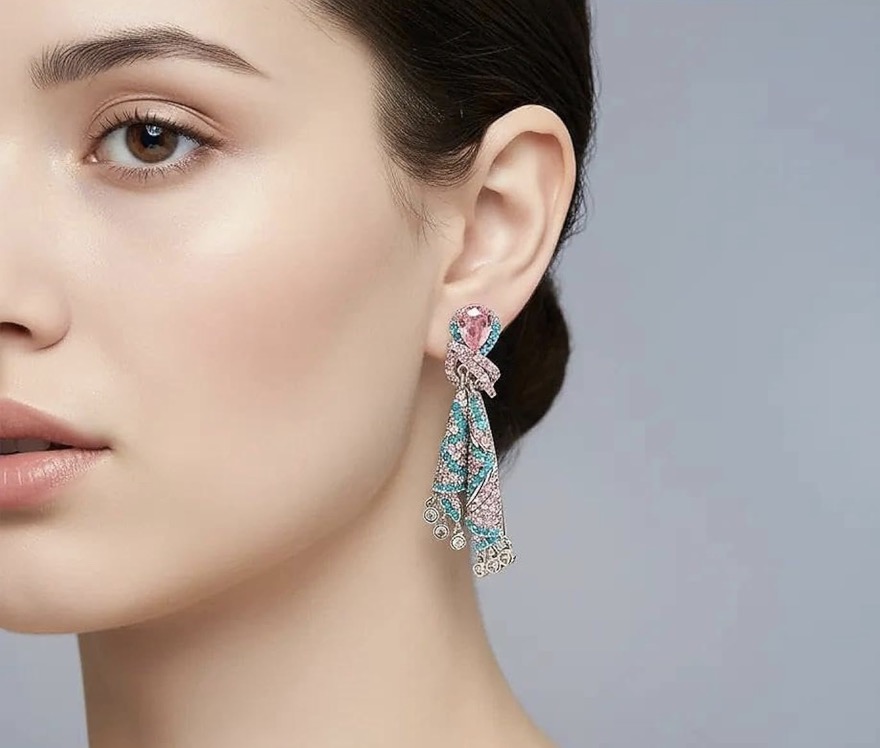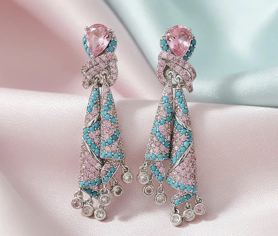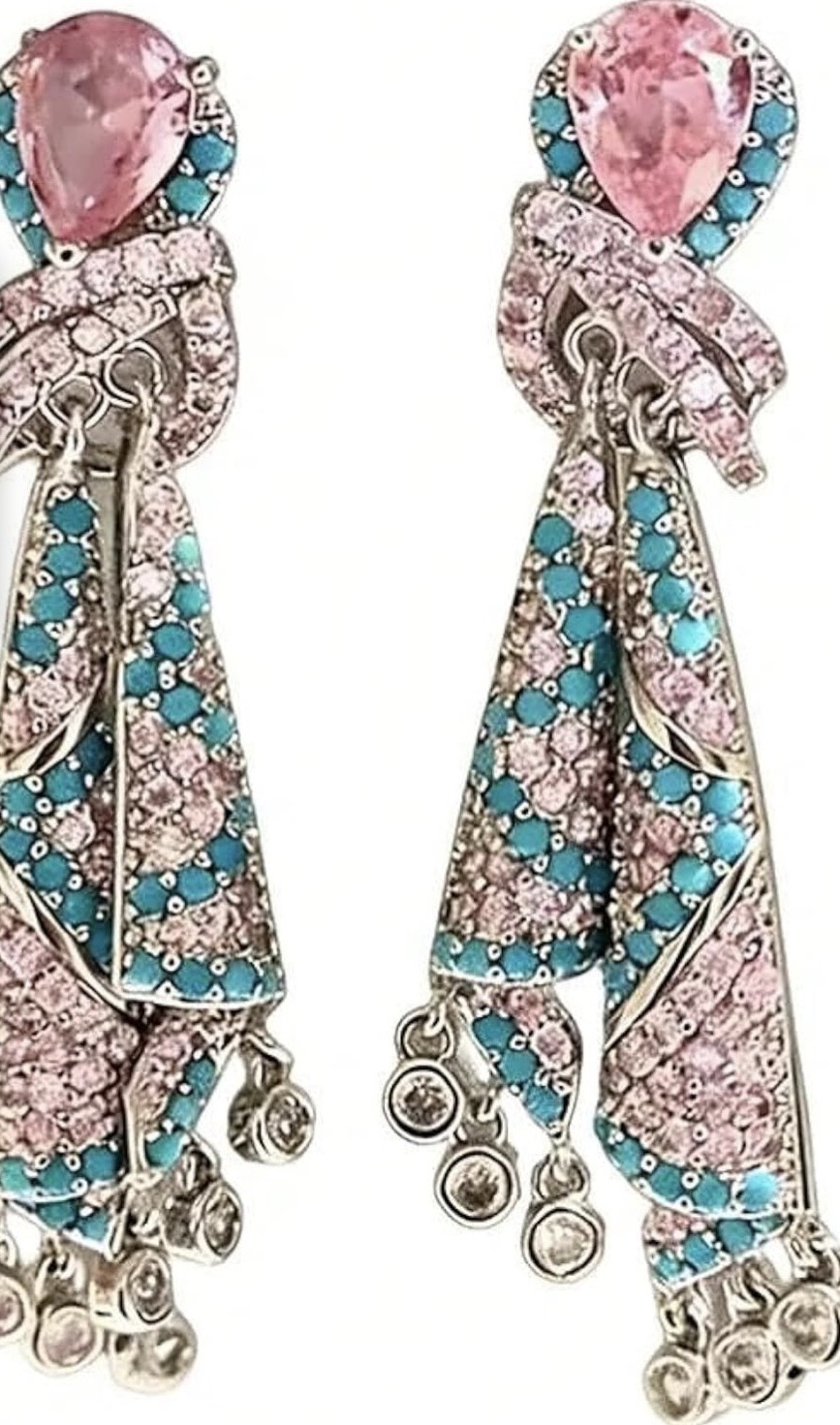 They start at the top with a juicy, candy-pink teardrop gem that looks like it’s been gossiping all night and loving every second of it. Wrapped around it? A flirty swirl of sparkle that says, “Yes, I sparkle this much on purpose.”